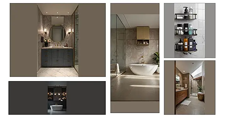 Getting this spa-inspired look is all about keeping things simple and organized. The clean white tiles and the sleek shelves create a calming vibe, while the matching bottles give everything a polished, grown-up feel. So, ditch the clutter and embrace the zen – your future relaxed self will thank you!