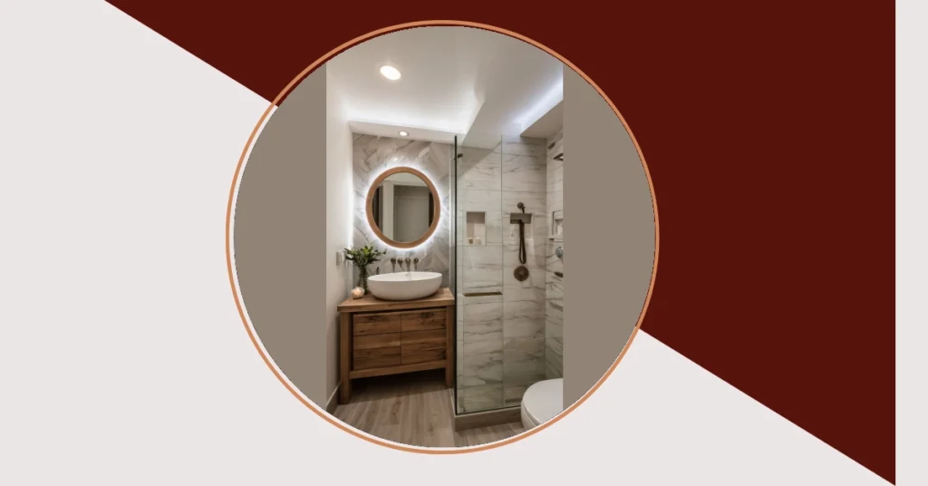 Think of it as a mini-oasis designed for maximum relaxation. The earthy tones and soft lighting set a tranquil atmosphere. This bathroom proves that “small” doesn’t mean “boring”! With a bit of clever planning and design, even a tiny bathroom can be both functional and a beautiful retreat – a perfect place to start and end your day feeling refreshed and ready to take on anything.
