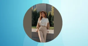 This lady is rocking a classic, chic look that’s perfect for any mom who wants to feel confident and stylish. The black top and blue pants combo is a timeless choice, and the high-waisted trousers really accentuate her figure. It’s the perfect balance of put-together and comfy, and she’s definitely giving off “I’m in charge” vibes. She’s proving that you can be a mom and still look absolutely fabulous!