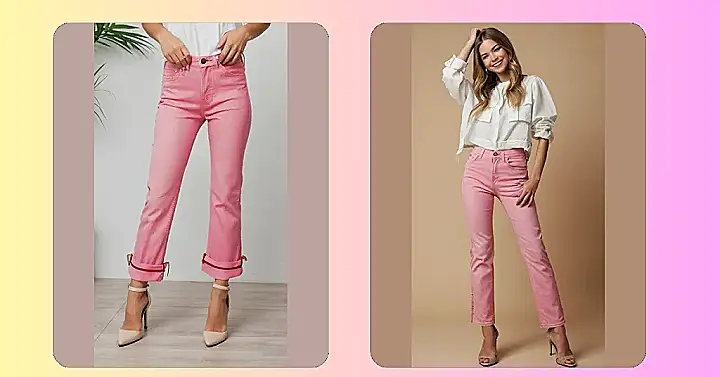 Imagine it’s summer, and you wake up wanting to feel great. Grab those fun pink jeans and pair them with a simple t-shirt or tank top. Throw in some metallic sandals that shine bright, and—bam!—you’re ready to conquer the day with a casual yet chic look. The best part? You’ll be spreading positivity wherever you go!