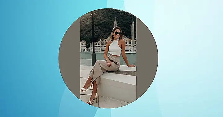 Seriously, though, this is the perfect example of “classy chic.” The neutral colours make it easy to mix and match with stuff you already own. Imagine swapping the top for a cool graphic tee, or the heels for some stylish sneakers. Suddenly, it’s a whole new vibe! This outfit proves that fashion doesn’t have to be complicated. Just keep it simple, add a little confidence, and BAM! You’re ready to own the world!