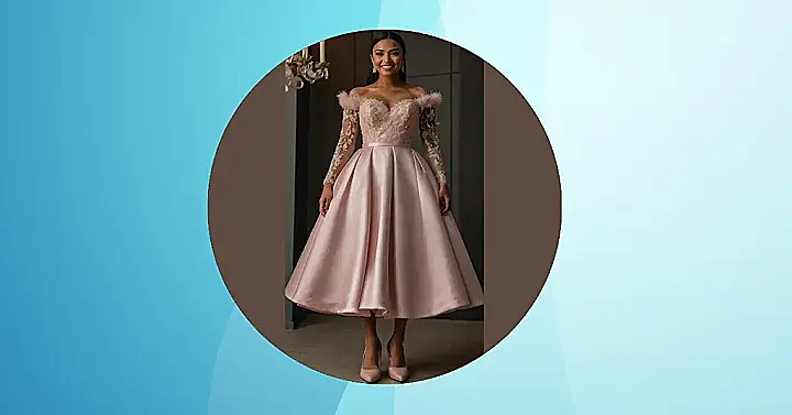 This dress is basically a party waiting to happen! It’s perfect for a wedding, but you might accidentally outshine the bride (don’t worry, she’ll probably forgive you… maybe). The fluffy shoulders are like tiny angel wings, and the skirt has enough volume to make you want to twirl all night long!
