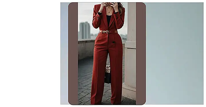 Getting ready for work doesn’t have to be boring! Sometimes, slipping into an amazing outfit, like this super cool burnt orange pantsuit in the picture, makes you feel like you could conquer the world. You might even accidentally agree to clean your room *and* do the dishes just because you feel so put-together and ready for action. It’s like instant “boss mode” activated, where you feel confident enough to tackle spreadsheets, attend meetings, or just navigate the office coffee machine with extra swagger. Professional outfits aren’t just clothes; they’re confidence boosters in disguise, helping women stride into work feeling awesome and ready to tackle whatever the day throws their way.