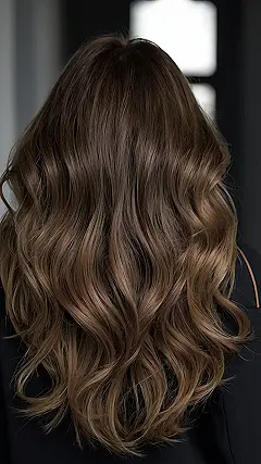 Wow, just look at that hair! It’s like a chocolate waterfall, all luscious waves and shimmery highlights. Seriously, it’s so gorgeous you could almost eat it (but please don’t!). I bet whoever owns this head of hair turns heads wherever they go, maybe even causing a small stampede of admiring onlookers. It’s the kind of hair that makes you want to run your fingers through it (if only you were allowed!) and ask for the stylist’s number.