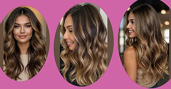 This hairstyle is like a sunset, but for your hair! Imagine those gorgeous, sun-kissed strands, all wavy and lovely. It’s a dark brown base with lighter brown and blonde highlights – a total balayage dream. It’s the perfect way to add some dimension and shine to your hair without going full-on blonde, and who doesn’t love a little extra bounce in their locks? It’s like your hair went on a mini vacation and came back looking fabulous.