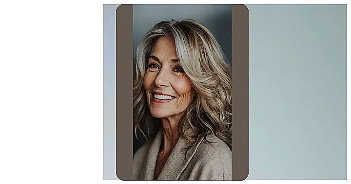 This woman is rocking a hairstyle that’s totally awesome! Her hair is super layered, which means it has different lengths and textures, making it look really full and flowing. Imagine it like a delicious layered cake, but instead of frosting, it’s soft, gorgeous hair! It’s like she’s got a secret weapon for looking amazing, and that weapon is a fabulous haircut. This style is perfect for anyone over 50, showing that age is just a number and looking fabulous is always in style.