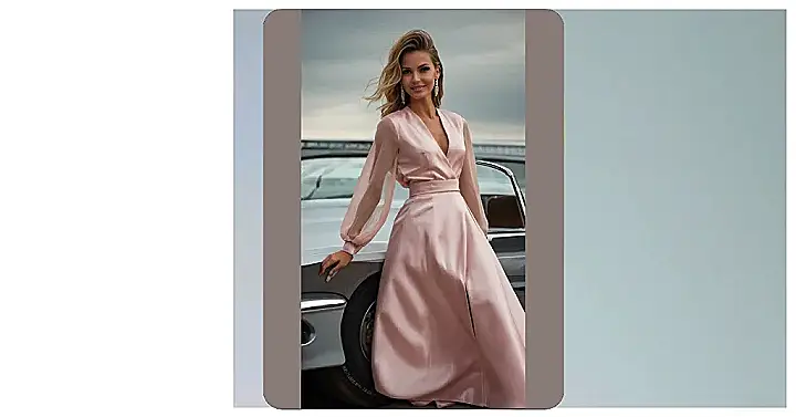 This pink dress is the ultimate definition of romantic fashion! It’s like something straight out of a movie – all flowing satin and elegant lines. Imagine yourself gliding down the street in this dreamy number, maybe even with a classic car as your stylish sidekick (like the one in the picture!). You’d totally steal the show at prom, a fancy dinner, or even just a casual stroll. It’s the kind of outfit that makes you feel like a princess…or maybe a super stylish secret agent on a very important, yet incredibly glamorous, mission.