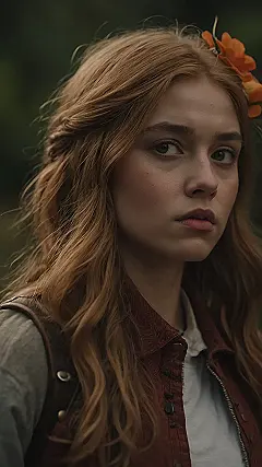 And let’s be real, her hair is giving us “just rolled out of bed but somehow still got a flower in it” energy. It’s like a mix of being totally put-together and completely messy, which is pretty much the vibe of being a teenager, right? She’s got that “I’m not sure what’s going on, but I’m here for it” look, which is basically the unofficial motto of any grade nine student.