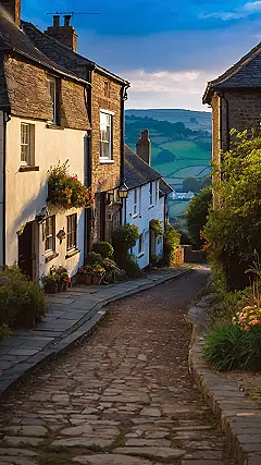 Imagine walking down this cobblestone street, surrounded by charming houses with their windows twinkling like friendly eyes. It’s almost like stepping into a fairytale! You can just picture yourself wearing a cozy sweater, enjoying the crisp autumn air, and maybe even spotting a fluffy cat napping in a windowsill.
