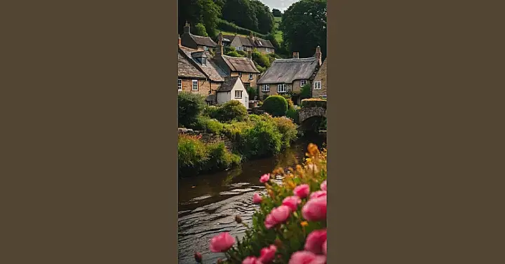 This picture is like stepping into a storybook! It looks like a village straight out of an old English novel. Imagine walking through the stone houses with their thatched roofs, maybe stopping for a cup of tea at a cozy cafรฉ with a roaring fireplace. Itโs the kind of place where everyone knows your name and the biggest problem you have is deciding whether to take a walk by the river or visit the local bakery.