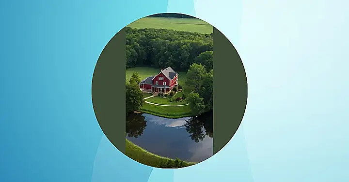 Imagine waking up in this gorgeous house, surrounded by rolling green hills that stretch as far as the eye can see! It’s like something out of a storybook, a beautiful country home with a bright red roof that pops against the lush green landscape. Seriously, this place looks like it’s straight from a fairytale, with enough space to hide from all your annoying little brothers and sisters (maybe even have your own private pony)!