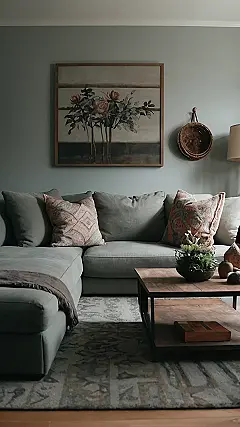 This living room is seriously chill. Imagine sinking into that comfy sectional after a long day of school – no homework allowed on this cloud of a couch! The muted green walls and that gorgeous floral artwork make it feel super calm and sophisticated, like a grown-up’s space, but way more fun. The cool coffee table is perfect for movie nights, or maybe even building a surprisingly elaborate pillow fort (don’t tell your parents).
