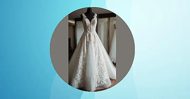 This bridal dress is like something straight out of a princess movie! All that gorgeous lace and delicate floral detailing? It’s enough to make anyone want to say “I do”—even if it’s just to the dress itself. It’s the kind of gown that whispers elegance and makes you feel like you’re floating on a cloud (probably because it’s probably made of some seriously soft fabric). Imagine twirling around at your wedding reception in this – pure magic!