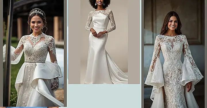 Seriously, look at this masterpiece! It’s like they took all the best parts of a wedding dress – the flattering shape, the beautiful lace, the long sleeves – and combined them into one stunning package. And that train? It’s the perfect touch of drama without being overly fussy. You’ll feel like you’re walking on air (or maybe just on a really fancy wooden chest – those things are surprisingly sturdy). This dress is all about elegance and confidence, and hey, who doesn’t want to feel like a million bucks on their wedding day?