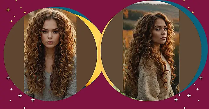 The image shows a girl with beautiful, bouncy curls. Her hair is like a warm autumn sunset, full of bright shades of brown and golden blonde. It’s so curly, you could probably get lost in those ringlets! Even though fall is a time for cozy sweaters and pumpkin spice lattes, it’s also a great time to show off your amazing curls. You can style them in all sorts of fun and creative ways!