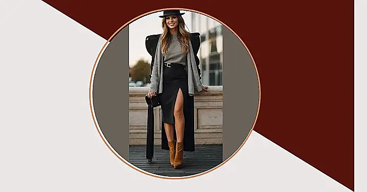 This outfit is perfect for a day trip to the winery! The gray sweater and black skirt are a classic combination, but the high slit in the skirt adds a touch of sass that’s perfect for a fun day out. Those boots are totally cute, and the hat completes the look. Just imagine yourself sipping on some wine with your friends, looking fabulous in this stylish ensemble.