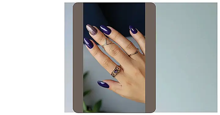 This gorgeous shade of purple is the perfect way to channel your inner autumn queen. It’s like a cozy sweater for your fingertips! The long, almond shape gives them a super chic vibe, and the sparkling rings are like the perfect accessories to complete the look. They’re like those extra sprinkles on top of your favorite ice cream – you just can’t get enough!