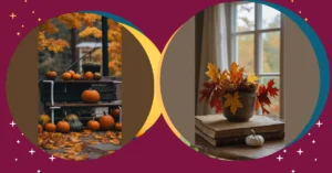This picture is like a cozy fall hug! It’s got pumpkins, and dried leaves, and even some lavender (which is totally fancy). It’s all about bringing the outdoors inside, and it’s giving me major fall vibes. Can you picture a warm fire crackling in the background, a mug of hot cocoa in your hand, and the smell of pumpkin pie filling the air? This picture is all about making your home feel comfy and warm, just like fall itself.