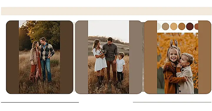 Imagine strolling through a field of golden leaves, wearing these cute outfits. Your family photo will be the envy of all your friends. From the casual dad vibes to the trendy mom look, this image gives you all the inspiration you need to create a picture-perfect fall photoshoot that you’ll cherish forever. So, gather your family, grab your cameras, and get ready for some fall-tastic fun! Don’t forget to choose your favorite colors from the color palette at the top – it’s like a cheat sheet for creating the perfect autumnal ensemble. Happy styling!