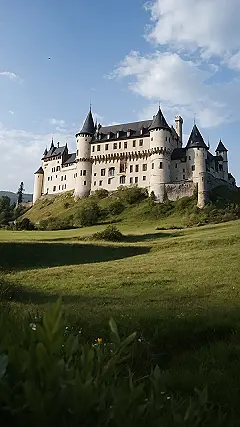 This castle looks like it was built for a fairytale. It’s got everything – tall towers, pointy roofs, and even a moat that looks like it’s straight out of a movie! Imagine being a prince or princess living here, hanging out in the courtyard with your friends, and taking selfies in front of this amazing backdrop. You could even have a knight in shining armor escort you around the castle, just like in the movies. It’s the perfect place for a royal adventure!