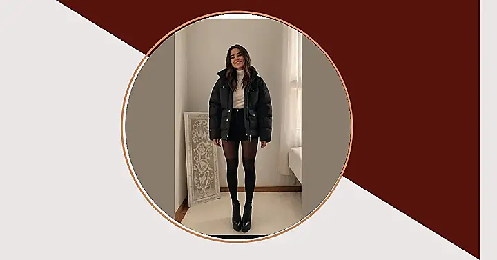 This outfit screams “fall fashion” with its comfy puffer jacket and cute boots. Think about it – you can ditch the heavy coats, but you still need something warm for those chilly fall days. This puffer jacket is perfect for keeping you cozy without feeling bulky, and the black tights and booties add a touch of style that’s perfect for a day of pumpkin picking, apple cider donuts, or just hanging out with friends.