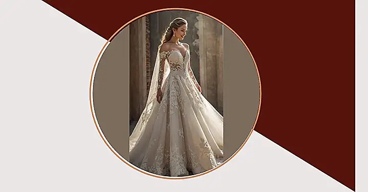 Planning your big day? Don’t forget the most important part – the dress! This one’s got all the princess vibes with its flowing skirt and fancy lace. The bride in the picture looks like she’s ready to waltz straight out of a fairytale. Just imagine twirling around the dance floor in this, feeling like a total queen…with or without a prince!