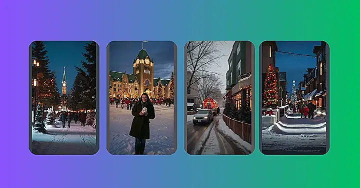 Imagine strolling down a Canadian street, the air nippy but cozy, with twinkling lights strung across snow-covered buildings like a sparkly necklace. A giant Christmas tree, brighter than a candy cane, stands proudly in the center, casting a magical glow on everything. It’s like a postcard come to life, only better because you’re actually there, maybe even with hot chocolate in hand, watching kids bundled up in their winter gear, their breath puffing out in little white clouds as they excitedly head towards Christmas festivities. It’s pure Christmas magic, Canadian style!