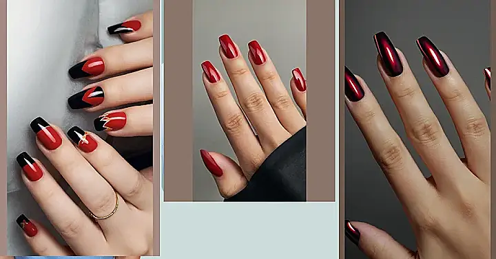 Okay, so Valentine’s Day is coming, and you’re probably trying to figure out how to up your game, right? Well, check out these nails! They’re like the cool, edgy version of those cheesy heart-shaped candies. Forget drawing a basic heart; these designs are like abstract art, but with black and red, the perfect colours for love. These designs show you can be romantic without being all cringey about it.