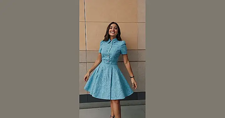 This blue floral frock is giving major “I woke up like this” vibes, but with a touch of elegance. It’s like a fairy tale come to life, but instead of a glass slipper, she’s rocking a brown belt that makes her look like she could conquer the world. It’s so pretty, you might even forget to look at her beautiful smile (but don’t worry, we won’t judge!).