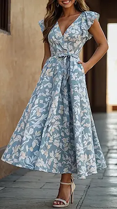 Imagine waking up on a sunny morning and slipping into a light blue floral frock that makes you feel like you should be starring in a rom-com. Every twirl turns heads, and every step feels like you’re floating on air! These outfits are perfect for informal brunches, busy workdays, or even a casual stroll when you want to channel your inner garden goddess.