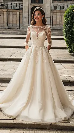 Planning a wedding can be like a super stressful exam, but choosing the dress? That should be fun! This long wedding dress is basically a masterpiece, with its fancy lace and oh-so-elegant design. And the best part? It has pockets! Seriously, pockets! Forget needing someone to hold your lipstick; you can keep it (and your emergency candy stash) right on you. Genius!