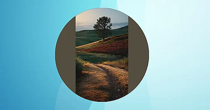 This picture looks like it could be from a movie! It’s a landscape photo, which means it shows a big, beautiful scene of nature. There are rolling hills, a lonely tree standing tall, and a path that winds its way through the grass. It looks like you could walk down that path and discover a hidden treasure, or maybe just a really cool view. The colors are really interesting too – they’re all soft and dreamy, like something out of a fairy tale.
