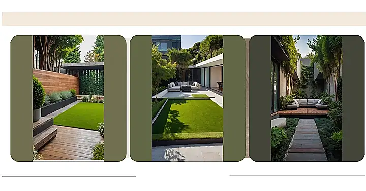 Talk about keeping things simple! This garden is all about the “less is more” vibe. Instead of a jungle of plants and statues, you get a sweet patch of grass, a comfy couch, and a single, well-behaved tree doing its shading thing. It’s like the designer looked at a bunch of garden catalogs and said, “Nah, I’m good. Just give me the essentials for maximum relaxation!”