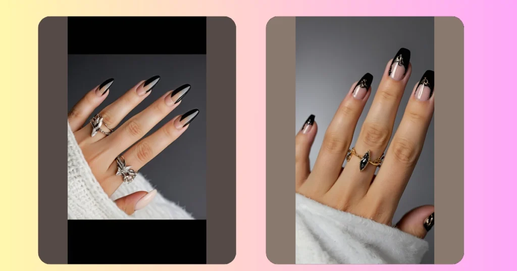 It’s like someone took the classic French manicure and gave it a total goth makeover, but in a cool, artsy way. Imagine how awesome these would look paired with your favorite black hoodie and some chunky boots. Plus, black goes with literally everything, so you can rock these nails no matter what you’re wearing. You’ll be the queen of dark glam in no time!