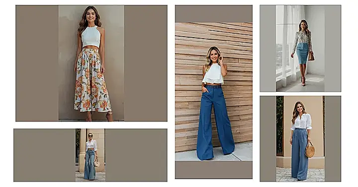 Check out this chill vibe for Spring 2025! Rocking a simple white top with these flowy, blue pants is like saying “I’m stylish, but also super comfy.” And that straw bag? Totally gives off a relaxed “I’m-heading-to-the-beach-but-also-might-stop-by-a-fancy-restaurant” kind of feel. Who knew looking this good could be so easy?
