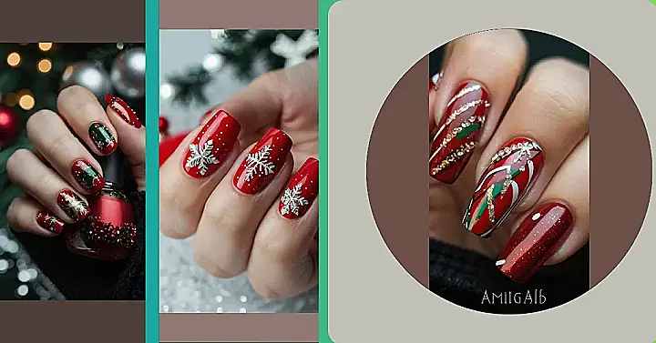 Seriously, look at those gorgeous colours! The rich reds and deep greens are totally Christmas-y, and those sparkly gold snowflakes are just the right touch of glamour. Picture these nails against a backdrop of snowy landscapes or twinkling Christmas lights – total festive perfection! They’re so pretty, you might even forget to open your presents! (Just kidding… mostly.)