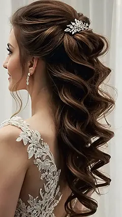 Imagine yourself rocking this at a wedding; you’d be like a real-life princess. With a few perfectly placed curls and that gorgeous hairpiece, you’ll definitely be turning heads (even if the bride is supposed to be the main attraction… whoops!). Just be prepared for everyone to ask you who did your hair, because they’re gonna want to copy your stunning look for prom, graduation, or maybe even *their* own wedding!