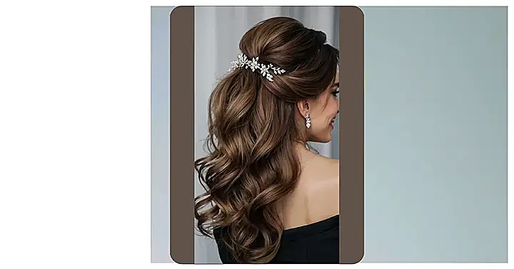 This hairstyle is giving us major “I’m ready to dance the night away” vibes! It’s like the hair equivalent of a sparkly dress – perfect for a fancy gala. The loose curls are super flattering and look effortlessly chic. And that hairpiece? It’s like a crown of tiny diamonds! Talk about a glamorous touch.