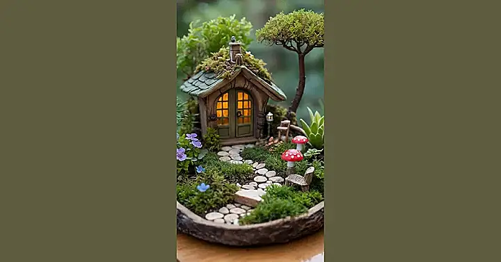 Imagine shrinking down and living in that adorable moss-covered house! It’s like something straight out of a Disney movie, but you could actually build something similar in your own backyard. Just grab some rocks, moss, and maybe those weird-looking mushrooms you see on your walks – boom, instant fairy garden. It is like an enchanted tiny home!