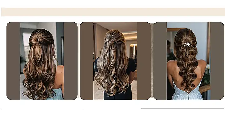 And the best part? It’s not too complicated! You can totally do this yourself with some bobby pins and a few minutes of practice. Just think of it as a mini art project for your hair, and you’ll look amazing in no time! This look is perfect for a bridesmaid who wants to be stylish but not over the top. So ditch the boring ponytail and try this simple, chic half-updo – you won’t be disappointed!