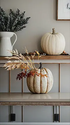 This is a good example of how to use natural elements to decorate your space. Think about how you can use things like leaves, branches, and even pumpkins (like the ones in the picture) to create a welcoming and seasonal atmosphere. You don’t need to spend a fortune or buy a bunch of fancy things – natural decorations are easy to find and can look super cool! Just remember, less is more, and your space will be a little slice of autumn heaven.