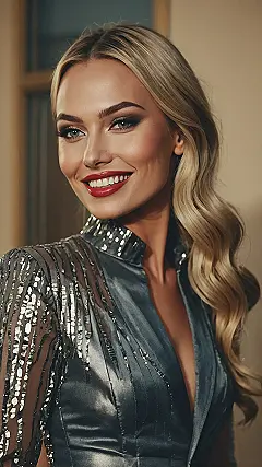 This outfit is totally boss-level for the office holiday party! Imagine yourself strolling in, shimmering like a disco ball (but, like, a chic, sophisticated disco ball). That gorgeous grey top with its sparkly accents is the perfect blend of festive and professional—you’ll be the most stylish person there, without looking like you raided grandma’s jewelry box. Plus, that smile? It’ll outshine even the brightest Christmas lights!