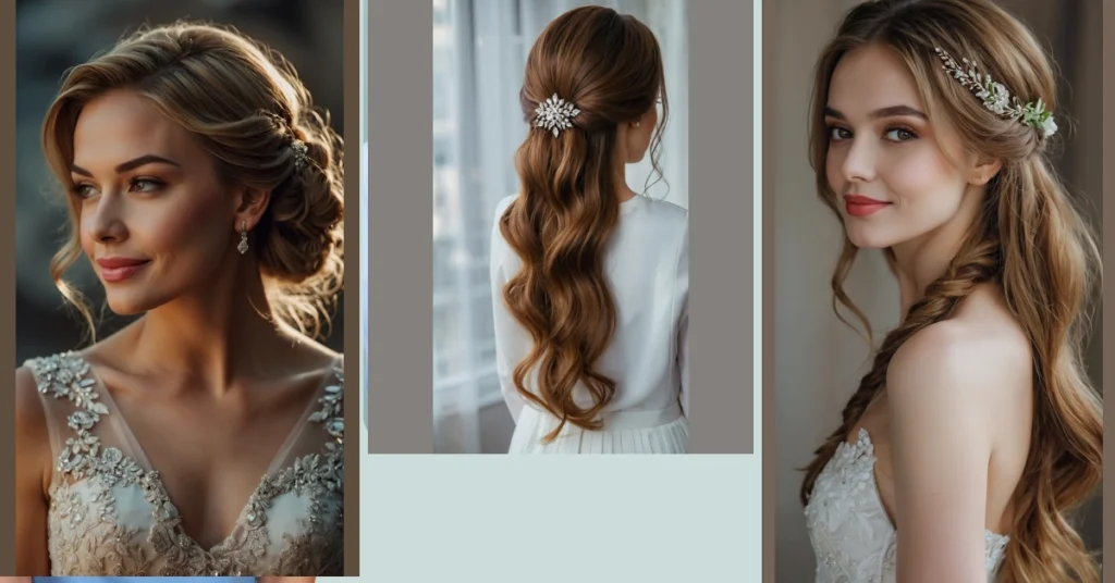 And speaking of fancy, that hair clip is giving total ice queen vibes (in a good way!). It’s like a tiny tiara just for your hair, so you can sparkle and shine while saying “I do.” This style is perfect if you want to look elegant without looking like you spent five hours glued to a salon chair. It’s like the ultimate hack for looking effortlessly gorgeous!
