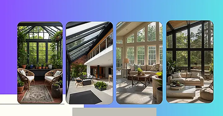 This isn’t just any sunroom; it’s a dreamy escape designed for total relaxation. With its gorgeous glass roof, you get all the natural light you could ever want, and those big windows? They’re like personal portals to the outside world, letting you enjoy nature without even having to step outside (unless you want to, of course!). The comfy chair and ottoman are calling your name for a good book and a nap… and don’t forget the adorable little plant—adding the perfect touch of farmhouse charm.