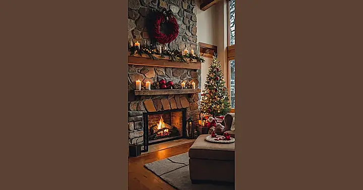 This picture screams “Christmas time!” It’s like a comfy, cozy living room straight out of a holiday movie. The red ornaments and the flickering candlelight make it feel extra special, and the fluffy blankets and pillows look super inviting. It’s a perfect spot to cuddle up with a hot chocolate and some holiday tunes. Can’t you just imagine yourself snuggled in with a good book or a holiday classic movie, with the fire roaring in the fireplace? The fireplace is so inviting! It makes you want to grab some marshmallows and roast them.
