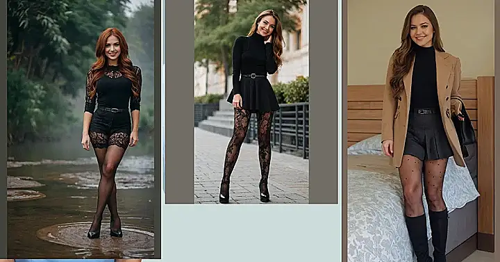 And for those who like their outfits a little bolder, black lace stockings have your back (or legs, rather). Seen with a fitted red midi dress or a sweet denim skirt, black lace offers a chic yet fun contrast that’s perfect for casual Fridays or weekend adventures. Grab some killer heels, and you’ll be turning heads faster than you can say, “Fashionista!”