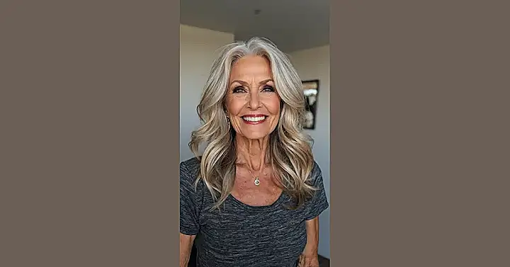 This woman is rocking the “gray don’t care” look! Her layered hair is styled perfectly, showing off her beautiful silver strands with confidence. It’s like she’s saying, “Hey, I’ve got wisdom and style – and I’m not afraid to show it off!” She’s totally proving that age is just a number and you can look amazing at any stage of life.