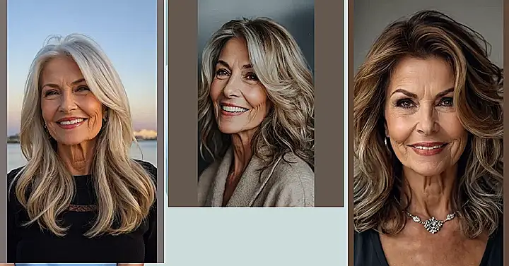 This woman is rocking a hairstyle that’s totally awesome! Her hair is super layered, which means it has different lengths and textures, making it look really full and flowing. Imagine it like a delicious layered cake, but instead of frosting, it’s soft, gorgeous hair! It’s like she’s got a secret weapon for looking amazing, and that weapon is a fabulous haircut. This style is perfect for anyone over 50, showing that age is just a number and looking fabulous is always in style.