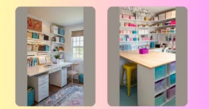 Imagine spending your afternoons in this gorgeous space, surrounded by pretty things and feeling totally stress-free. It’s the perfect spot for crafting, studying, or just relaxing. The soft lighting and pastel colours create a zen-like vibe, so you’ll actually *want* to spend time tidying up your desk. Who knew organization could be so stylish? And hey, if all else fails, you can just pretend you live here—at least until you’ve cleaned your own room!