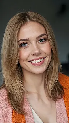 But don’t let that perfectly smooth, sun-kissed blonde fool you into thinking it’s zero effort! While she might not be fighting rebellious ringlets, keeping hair this glossy and gorgeous requires a few secret weapons – maybe a conditioner so good it practically gives your hair a spa day, or a serum that makes every strand feel like a celebrity. The real magic of a classic, straight style, especially when it frames such a radiant smile, is how it makes you look effortlessly put-together. It’s the ultimate proof that sometimes, the most uncomplicated styles are the ones that shine the brightest, making you ready to conquer anything from a school presentation to a weekend hangout!